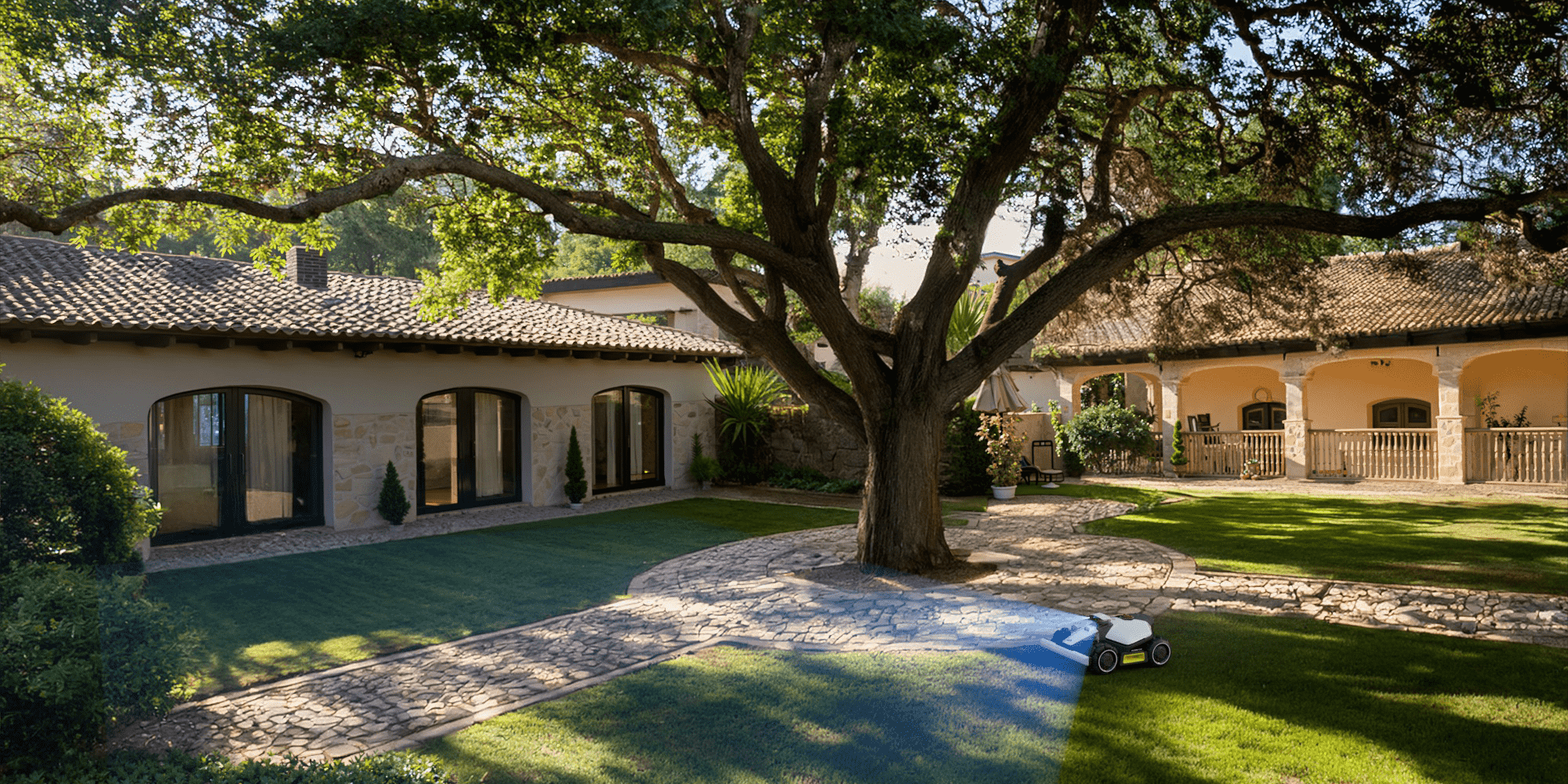 Il LUBA mini AWD è progettato per ambienti esterni complessi, navigando con abilità in spazi ristretti, lavorando sotto gli alberi e gestendo giardini intricati. La sua tecnologia UltraSense™ AI Vision assicura un taglio uniforme e di qualità professionale su un'area fino a 300 metri, anche durante le interruzioni del segnale satellitare. Una volta ripristinata la connessione satellitare, il sistema si integra perfettamente, fornendo un prato ben curato. Garantisce inoltre che il LUBA mini AWD rimanga sempre sul prato e eviti le zone vietate.