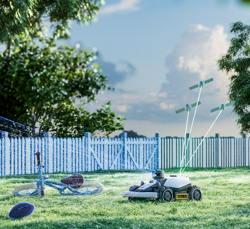 Grazie al LiDAR a 144 raggi che genera fino a 200.000 punti al secondo, il robot crea una mappa 3D dettagliata del prato in tempo reale. Ciò consente un posizionamento al centimetro, anche in ambienti complessi o con segnale bloccato, come sotto alberi o trampolini.