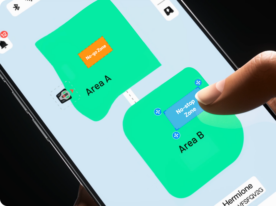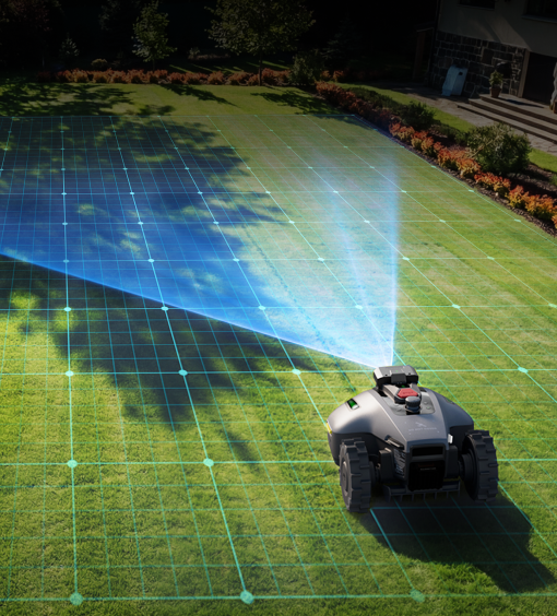 In modalità Auto Mapping, YUKA mini 2 robot tagliaerba con IA può esplorare e mappare automaticamente fino a cinque zone consecutive. È sufficiente guidarlo una sola volta in ogni area: memorizzerà la disposizione del giardino e identificherà automaticamente i percorsi tra le zone come “tracce di taglio”.