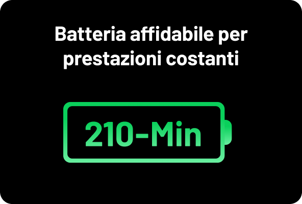 - Pulisce fino a 150 m², 210 minuti di autonomia non-stop