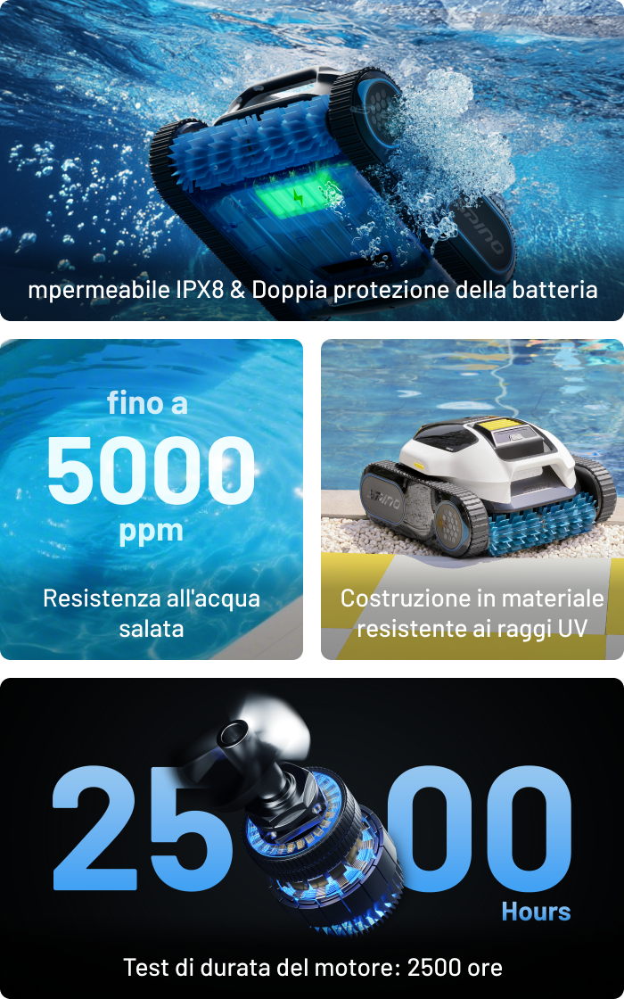 Pulizia profonda senza sforzo su tutte le forme e superfici della piscina